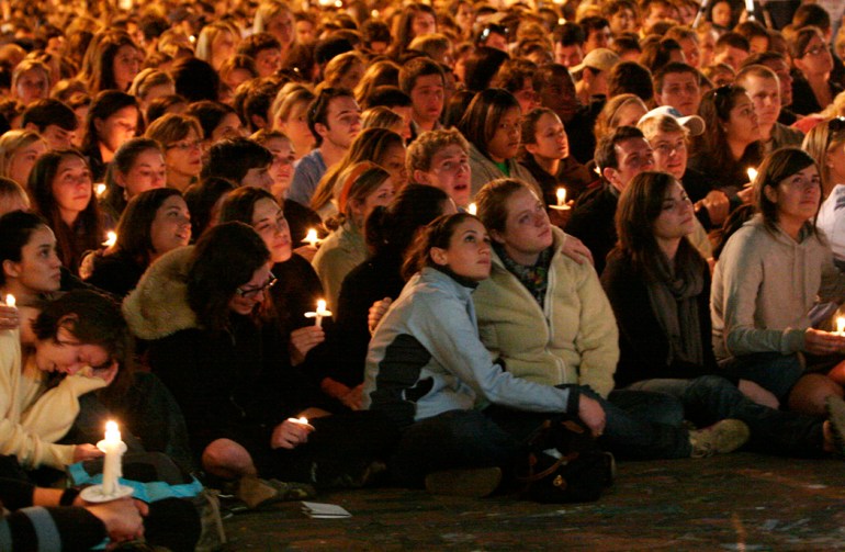 UNC students participate in a candlelight vigil for slain UNC-Chapel Hill Student Body President Eve Carson March 6, 2008.