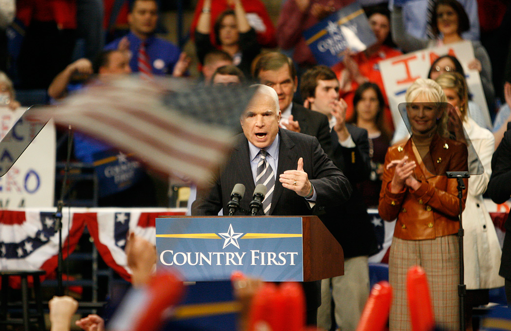 Sen. John McCain speaks at a North Carolina campaign rally during the 2008 presidential election campaign.